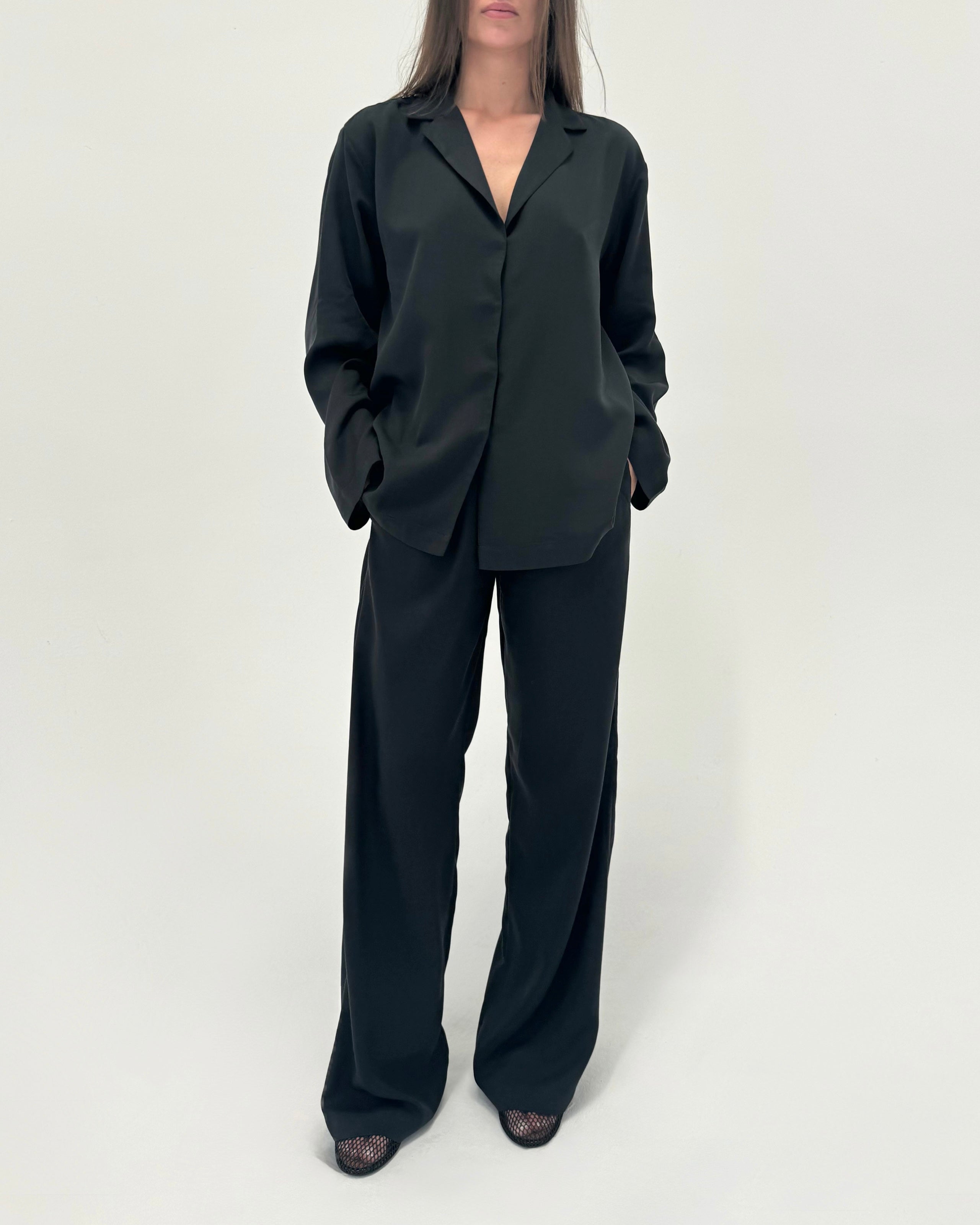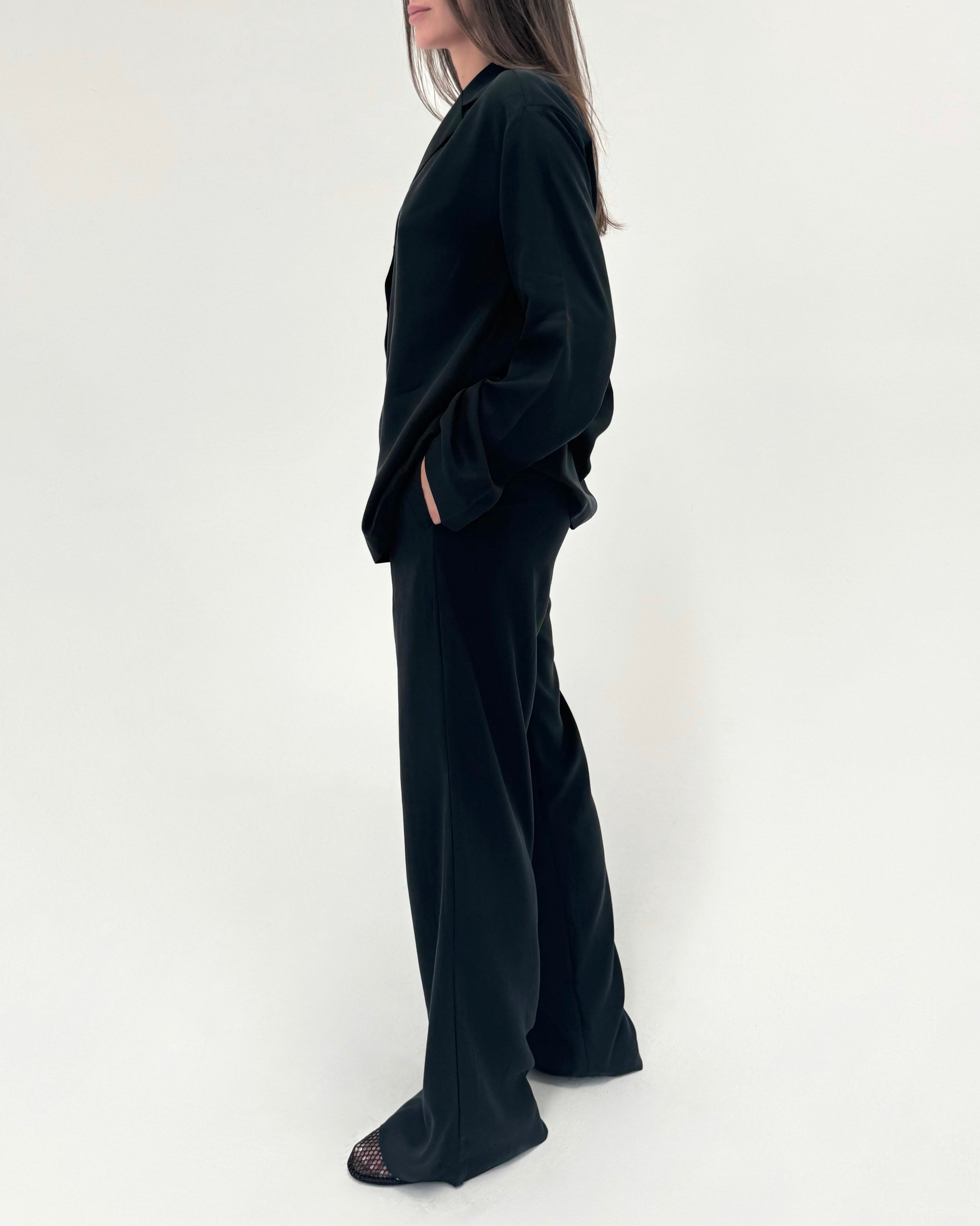 Our 'WIDE-LEG PANTS' crafted from a lightweight, eco-conscious fabric - 100% TENCEL® Lyocell - in timeless black color is a versatile staple for any destination. Crafted with a focus on both comfort and style, these pants look effortlessly chic. The elastic waistband, made from organic cotton and rubber, makes them a comfortable day-to-night choice with two front side pockets for added convenience. Tailored to a straight silhouette, with a waistband that sits between the waist and hips, these pants offer a perfect fit for all body types.